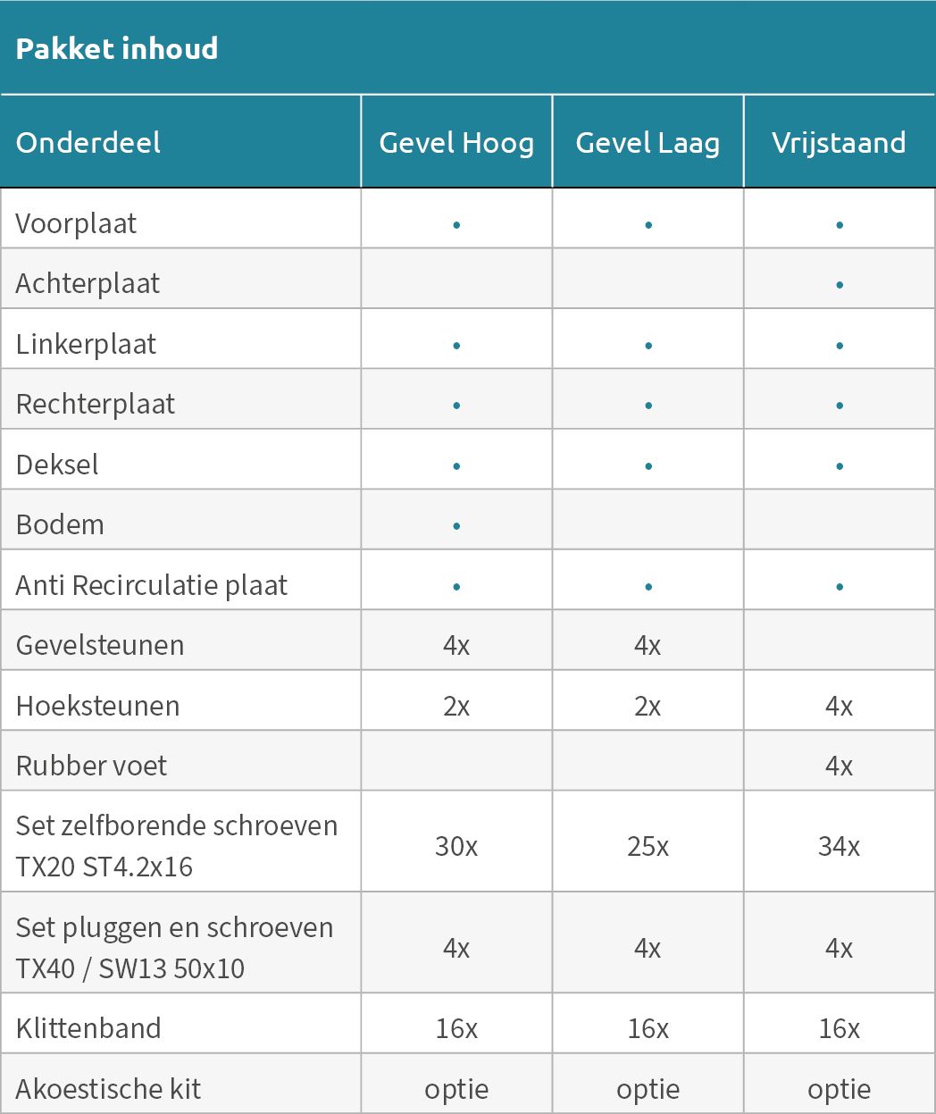 Indien de isolatiekit wordt besteld wordt de juiste maat anti-recirculatieplaat mee geleverd.